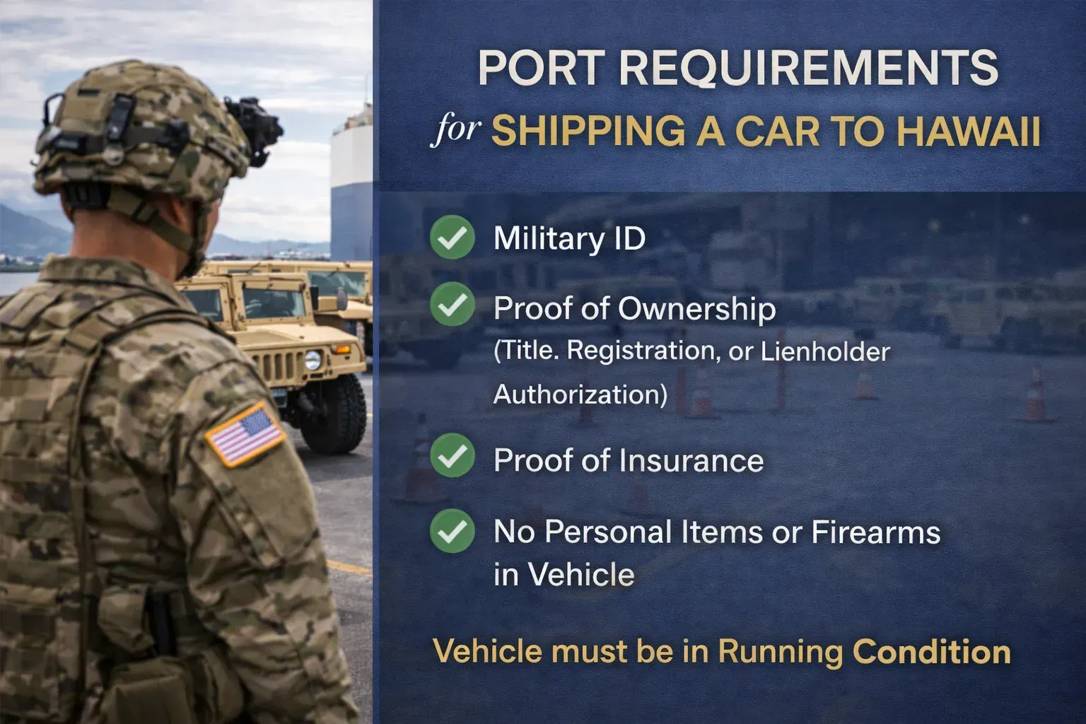 - Shipping a car to Hawaii requires following a consistent set of rules governing documentation, vehicle preparation, fuel levels, port check-in procedures, and post-arrival registration that apply regardless of which carrier or service tier is selected.